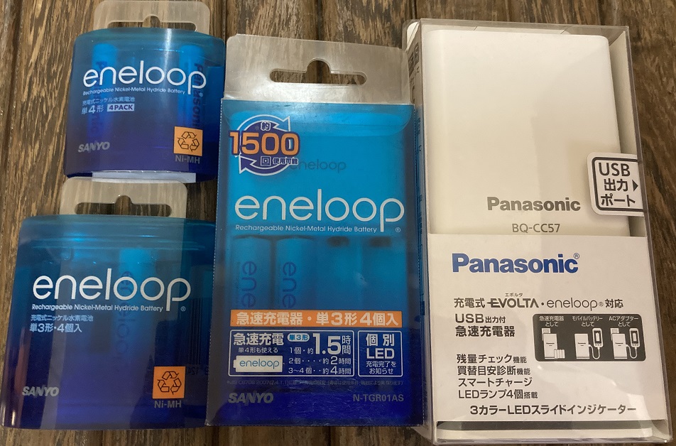 かなり長いこと、普通の乾電池を買ってない。もう10年以上お世話になっているのは、充電電池のエネループ(eneloop)。単3電池10本以上、単4電池6本以上。手元にある以上にリモコンなどにちょこちょこ使っていて、いまいち正確な数は不明。なぜ、ここで普通の乾電池と限定したかというと、ここ1年ぐらいはコロナの影響で、ほぼ毎朝体温を計っていて、体温計のボタン電池(LR41)は充電できる物がなく、残念ながら使い捨て。それ以外は、エネループの単3、単4で生きている。10年以上前に購入した時はまだ三洋のエネループだったけど、今はパナソニック。